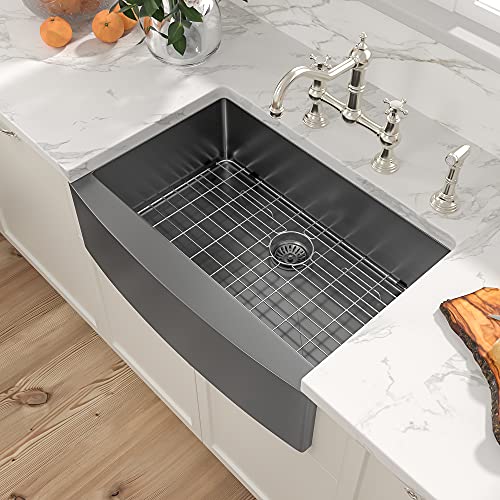 Free Shipping 🛒 36 Farmhouse Sink - Sarlai 36 inch Kitchen Sink Apron Front Gunmetal Matte Black/Dark Gray Stainless Steel 16 Gauge Deep Single Bowl Kitchen Farm Sink
