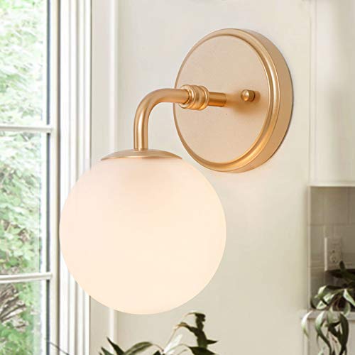 Review Wall Sconces, Gold Sconces Wall Lighting, Globe Wall Light with White Frosted Glass for Hallway, Kitchen and Bedroom, 5.5 L x 10 H